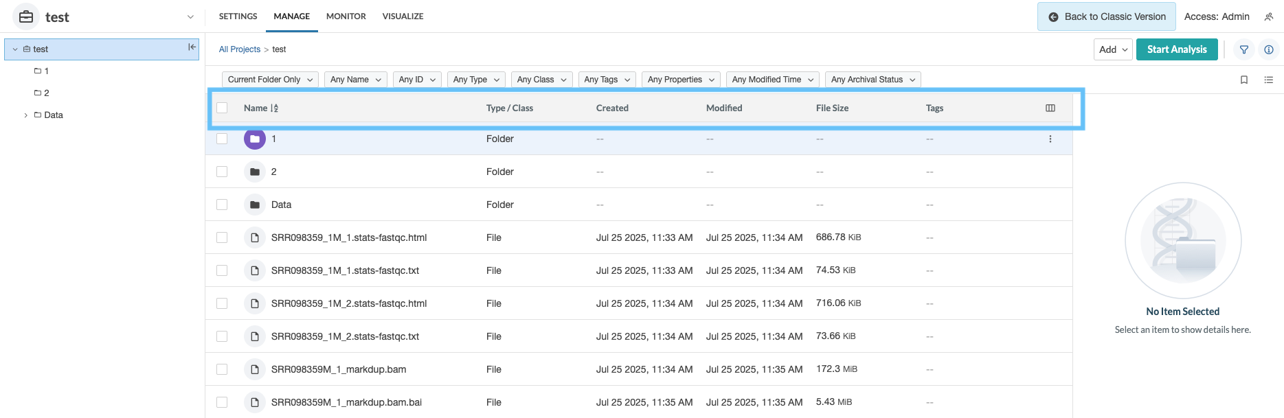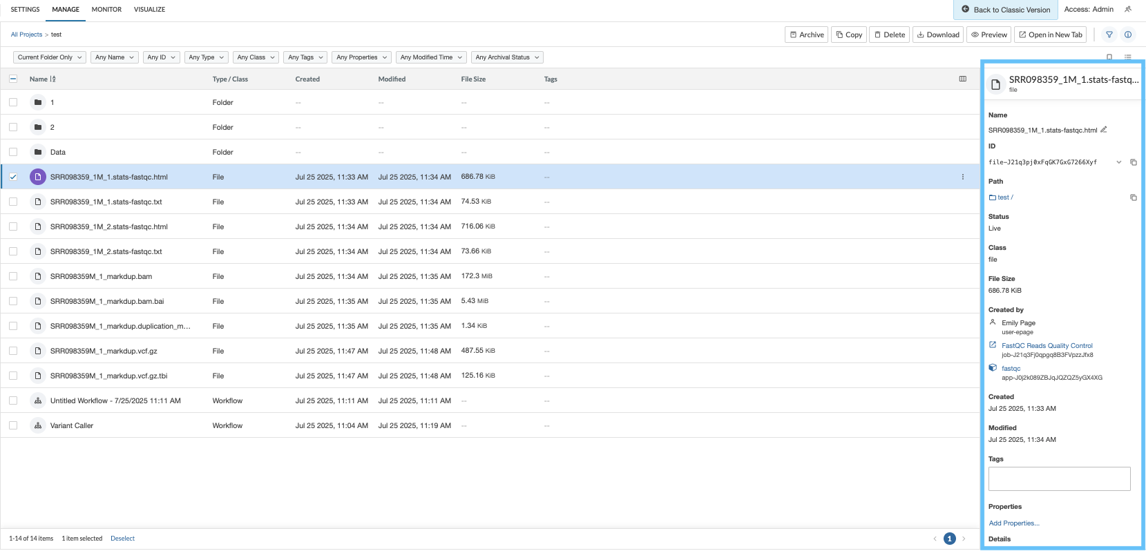 * The same file can be uploaded multiple times into a project; different objects will be created. The platform DOES NOT overwrite a file. Instead, it creates a new file ID every time you upload it.
